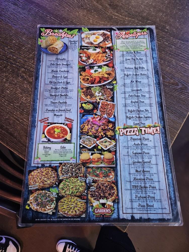 The menu at Gardens Bar & Grill offers a delightful variety of dishes. Guests can indulge in classic appetizers like garden samplers and chicken strips. The nachos are perfect for sharing with friends. Many diners come back for the hot wings—a fan favorite. For the main offerings, there's something for everyone. From hearty burritos to lighter fare, the menu accommodates diverse tastes. The drinks menu also impresses with an extensive selection of beers and cocktails. Happy hour deals make these options even more attractive. Whether dining solo or with a group, there's always a plate to share or enjoy.